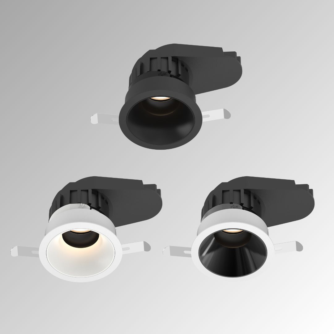 Lavtbyggende innfelt downlight, tiltbar og designet for enkel installasjon. Leveres i 2700K med 36° spredning (standard). Kan tilpasses med ulike spredningsvinkler (24°, 36°, 45°), 6 ulike farger på reflektor, sort/hvit flens, og tilbehør som bikube-raster og trimless for en optimal belysningsløsning.